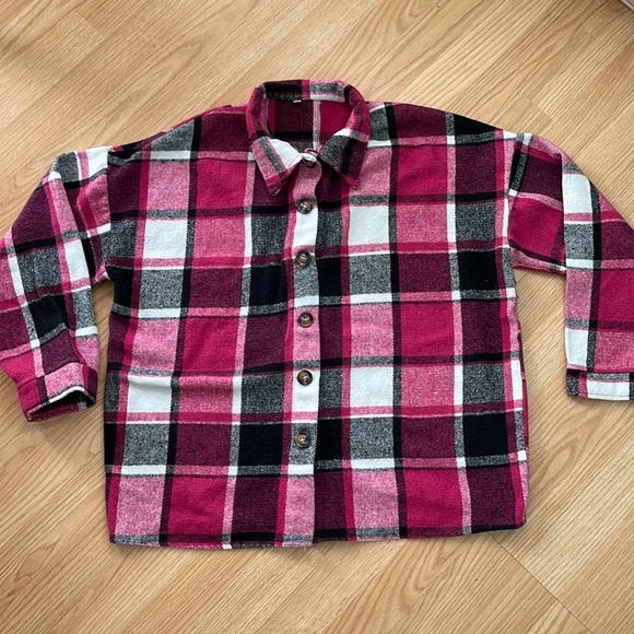 Gently worn shacket. Size 2XL. Pink and black plaid. See pictures for labels.