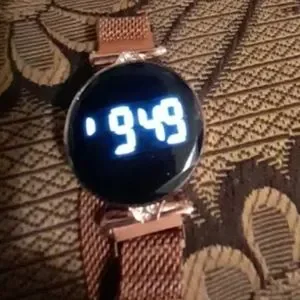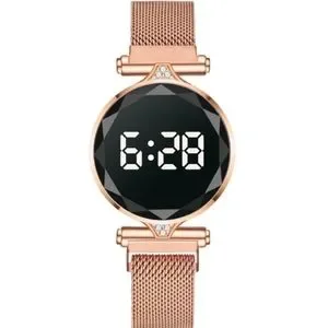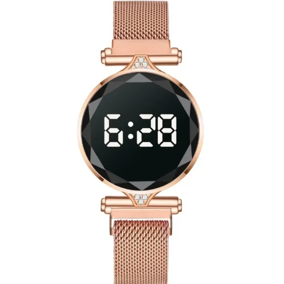 Rose Rhinestone Gold Buckle Mesh Belt LED Watch