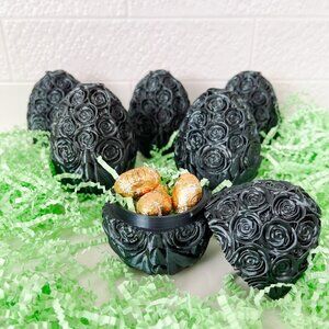 Celebrate Easter, spring, and special occasions with these stunning handmade rose-covered eggs! Each elegant egg splits in half, making it perfect for filling with candy, gifts, or keepsakes. Ideal for Easter baskets, party favors, wedding decor, and unique gift packaging. Satin Black colour!