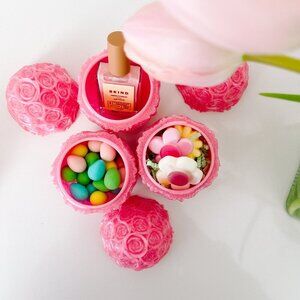 Celebrate Easter, spring, and special occasions with these stunning handmade rose-covered eggs! Each elegant egg splits in half, making it perfect for filling with candy, gifts, or keepsakes. Ideal for Easter baskets, party favors, wedding decor, and unique gift packaging. Pretty Pink Glittery colour!
