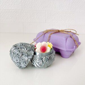Celebrate Easter, spring, and special occasions with these stunning handmade rose-covered eggs! Each elegant egg splits in half, making it perfect for filling with candy, gifts, or keepsakes. Ideal for Easter baskets, party favors, wedding decor, and unique gift packaging. Shiny Silver colour!