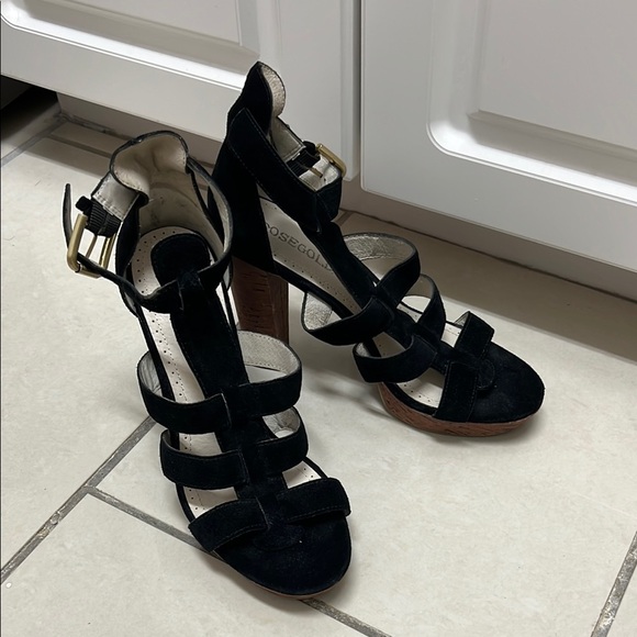 Rosegold Suede Platform Strappy Open Toe Sandal Heels | Size 6.5