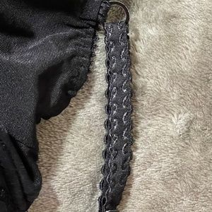 Roselle Black Sheer and hard Lace Body Suit Romper Girdle. M size