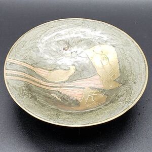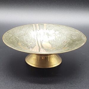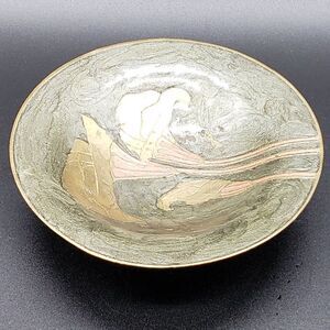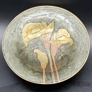 Rosenthal Netter Vintage 1970s Enameled Lily Flowers Brass 5.5" Pedestal Bowl