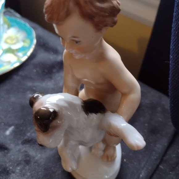 Rosenthal figurine of a cherub and terrier dog, MH Fritz, older mark.