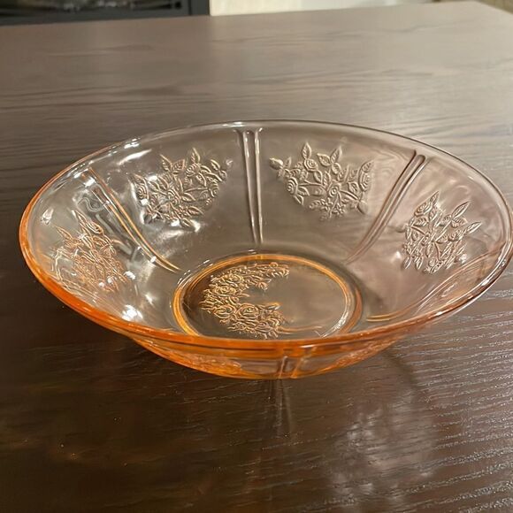 Rose of Sharon Berry Dessert Bowl Pink Glass Federal Glass Vintage Excellent used Condition