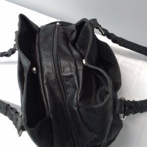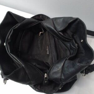 2 of which snap 1 zippers. Inside the centre zippered section has 2 more smaller pockets. 1boutside pocket.