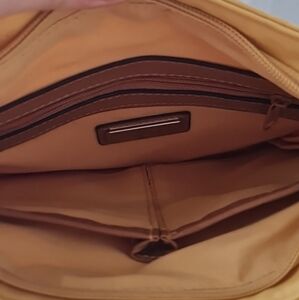 beautiful vegan leather Rosetti handbag in a yellow color with brown accents.in great condition.
