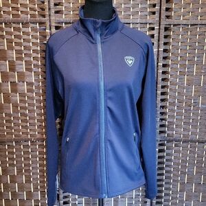 Elegant dark blue jacket with full zip. Features Rossignol emblem on the chest.