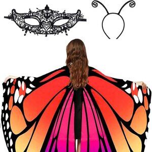 Rosy Blue Butterfly Halloween Costume Cosplay Cape & Lace Mask &Antenna Headband