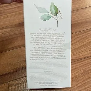 Natural reeds, twigs, and leaves. Fragranced oil & solvent mixture.