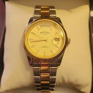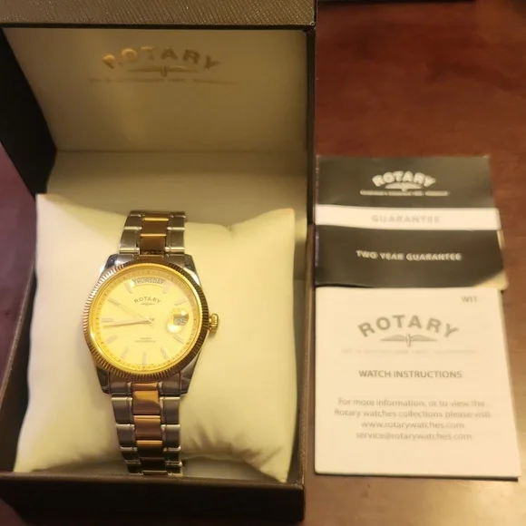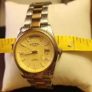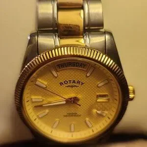 Men's style Rotary watch too big for my wrist. I loved it, pampered and cared for. This watch band was sized down to my small wrist and I cannot find the extender links. As a result of being too big this piece ended up in collection of my watches and long forgotten. Now the battery needs replacement but the condition of the watch is like new. No scratches, dents and prefect crystal.