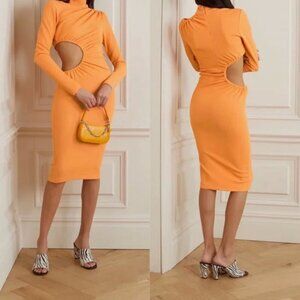 Rotate Birger Christensen Alice Dress Mock Orange Cutout Midi Long Sleeve 4 Mock
