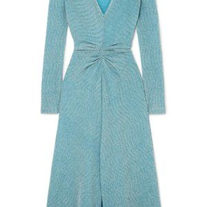 Rotate Gathered Metallic Stretch-knit Midi Dress