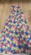 Stunning polyester fabric in bold floral print with slight sheen. Lined at bodice but unlined elsewhere- fabric is thick and opaque. Non stretch.