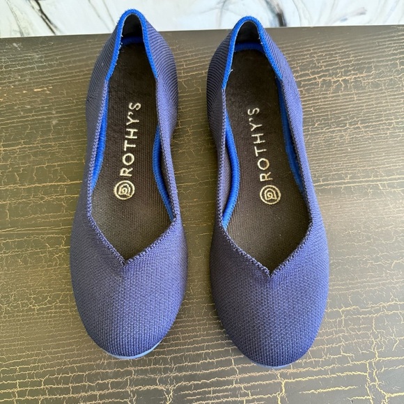 Elegant navy blue loafers by Rothy's. Perfect for casual and formal wear. Comfortable and stylish design.