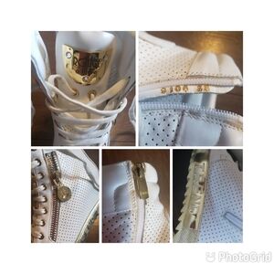 White and gold lace up leather wedge bootie in good preowned condition with minor scuff marks visible in last picture.
