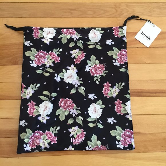 New with tag Rouje lined drawstring velvet bag in their evening wear 2023 print.