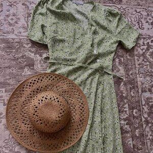 Floral Print Feminine Green Dress, size XS, Rouje style Frenchgirl aesthetic, city wear, true to Rouje exact style