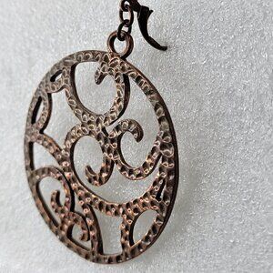 Round Antique Bronze Hued Filigree Earrings
