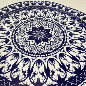 Enhance your dining setup with this set of four round placemats featuring a striking blue and white mandala pattern. Ideal for protecting surfaces while adding a touch of elegance to your table decor.
