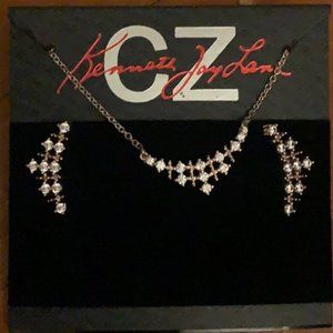 4 cttw round cubic zirconia mesh design ear crawler and matching pendant set.