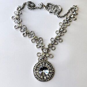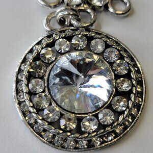Round Crystal Pendant Necklace - Wedding Prom Bridal Necklace Party Necklace