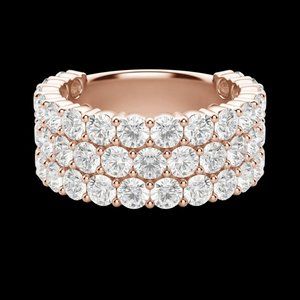 This eye-catching band features three rows of round cut lab diamonds for a flashy, glamorous design.