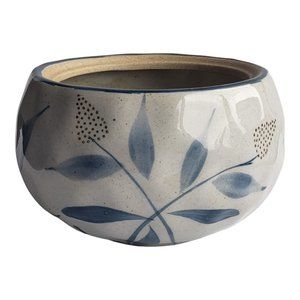 Round Grey & Blue Japanese Style Glazed Ceramic Planters ~ For Bonsai Succulents