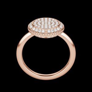Part of the Star Dust Collection, this round ring is pavé set with intentionally placed metalwork and milgrain to create the illusion of diamond facets.