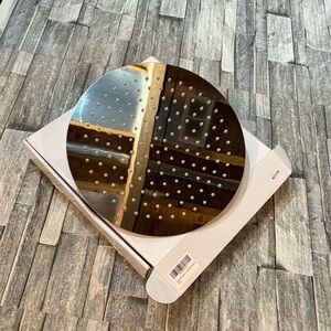 Stylish round silver shower head with a sleek design. Perfect for modern bathrooms.