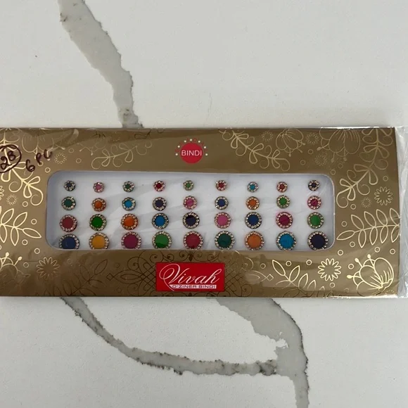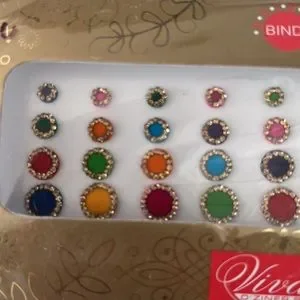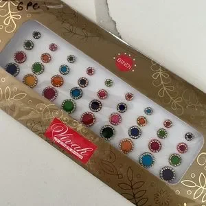 36 bindi in one card . Sizes 4 in one card . Shape - round . Color - multicolour