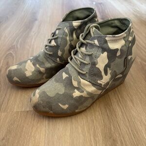 Route 66 Woman’s 9 Emerson Camo Canvas Wedge Booties streetwear urban style