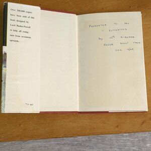 Rovering to Success by Lord Baden-Powell; a guide for young manhood. Hard Cover. Topics include Religion, Sex, Gambling, etc. 1959. Slipcover is worn, some discoloration on front leaf. Inside appears like new. From my Father-in-law's library. Selling 19 scouting books. He was the Dad who would organize some type of fun activity with the neighborhood kids while the other Dads were relaxing at home after work. Sometimes games, sometimes building action-type stuff.