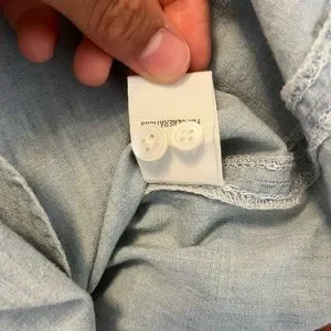 This is an amazing high quality piece by a brand with a great mission! There is a button missing at the top but there is 2 extra buttons (see pictures)