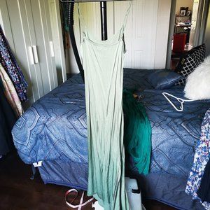 Midi slip dress with a satin effect. The straps are adjustable, they tie at the back through a loop.