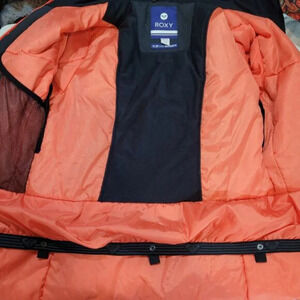 Roxy Black and Orange Jacket with White Zig Zag Stripes - Size Large