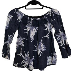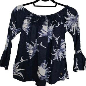 Roxy Blouse Top Women XS Off The Shoulders Moon Sapphire Blue Boho Peasant