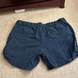 Comfortable navy blue shorts with a drawstring waist. Perfect for casual wear. Slightly faded Lyocell/cotton blend