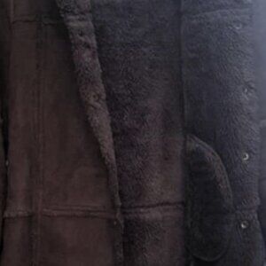 This Roxy brown faux-suede coat with a faux-fur (Sherpa) lining has a style that has a popular design as a warm winter outer layer. The exterior is a soft, suede-like material, while the interior and trim feature a plush, dark Sherpa lining. It has 6 metal buttons and inseam pockets. It is a long, button-down coat with a wide collar and visible seam details, which gives it a classic, sometimes vintage 70s- or 90s-inspired look. The Sherpa lining provides significant insulation, making it ideal for cold weather. In excellent condition. Well kept and cared for beautifully.