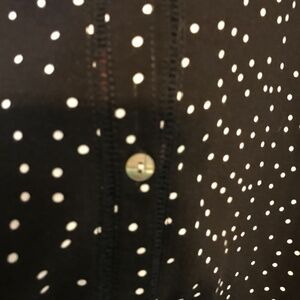This is a super cute top. In picture it shows the button up front with my finger under to shoe the little detail. Last picture shows the back with that same detail that goes across just under back of neck but there’s also a few almost pleats that give it a different type of hanging. If that makes sense. Missing a button but there’s an extra that I haven’t sewn on yet.