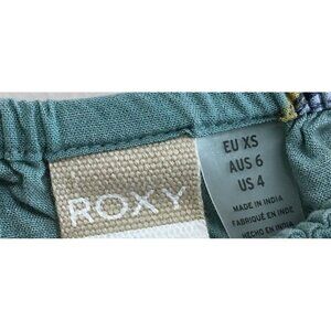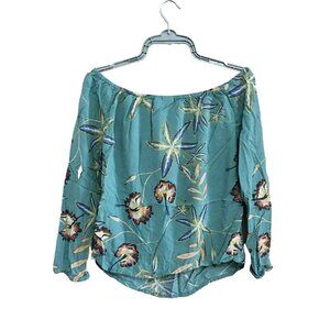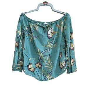 Roxy Cropped Blouse Women's Size 4 Green Vicose Off The Shoulder Floral Print