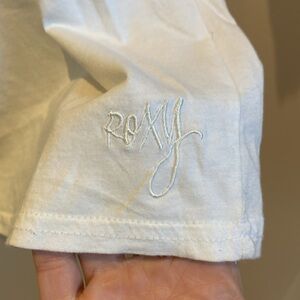 Cute little Roxy top with lace flutter sleeve detail.