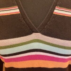 Black with stripes, XL (fits more like a L in my opinion) long-sleeved hooded shirt with pocket.