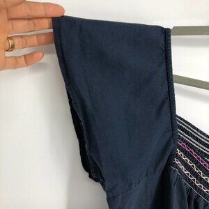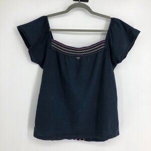 Roxy Navy Off The Shoulder Square Neck Bohemian Embroidered Top size ~L