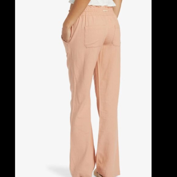 Roxy Oceanside Linen Wide Leg Pants with Pockets & Drawstring - Medium in Coral