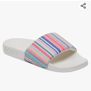 Roxy Slippy Terry Cloth Slides Sandals White Pink Rainbow Stripe Size 7 Womens