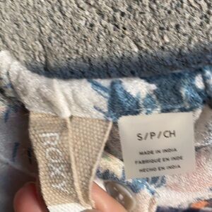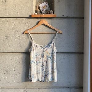 Beautiful print on this cute “almost crop style” spaghetti strap tank top. It has a flowy silhouette, adjustable straps, & very soft fabric. I typically wore it with the open front Design Lab cardigan I have posted that has a boho look to it and the light blue wash Buffalo jeans also posted. It’s a size small and I am typically a medium in almost all brands but this fit nicely because I have a smaller bust. Still love it. Just ready to begin freshening up some of my pieces. Please feel free to request measurements you may need or send questions you have before purchasing.