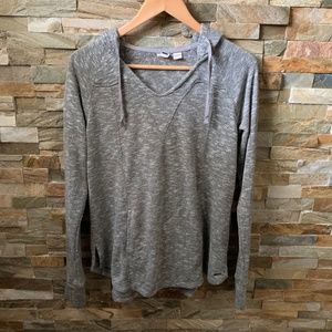 Heather Grey light pullover sweater with hoodie and kangaroo pouch.