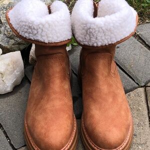 Roxy Tan Ankle Boots with Sherpa Lining